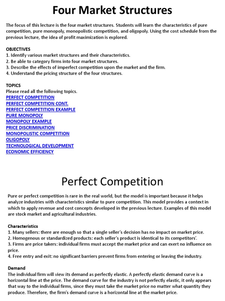 Micro Lecture 4 Pdf Monopoly Perfect Competition